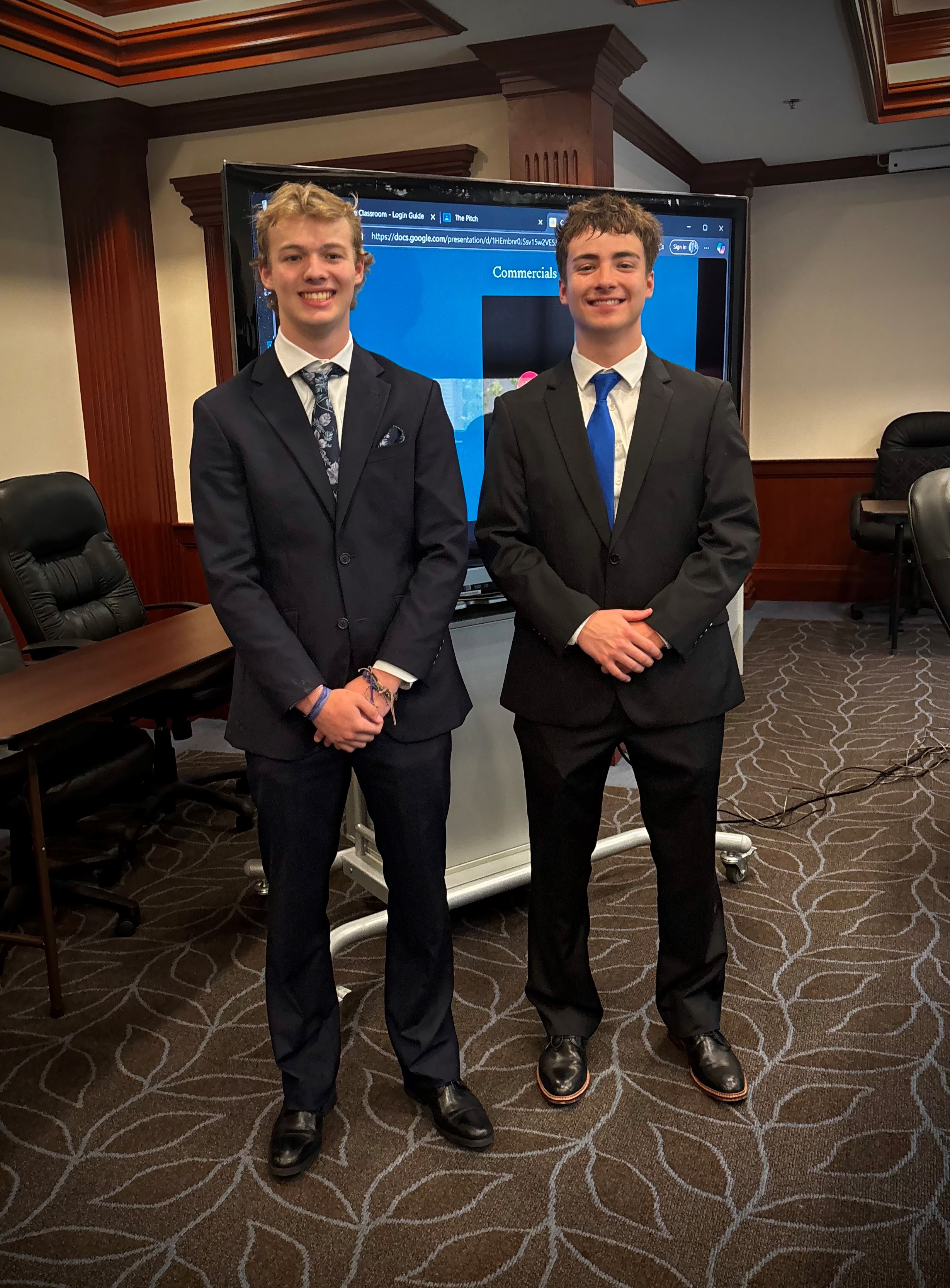 SHS students Jack Donnelly and Christian Mendez took top prize with their business proposal Pothole Pros – a quick solution for unsafe roads after harsh winters - which impressed judges Sr. Vice President/Chief Commercial Lending Office Kevin Marquis, Sr. Vice President/Chief Cred Officer/Environmental Office Chad Titcomb, Vice President/Business Development Shawn Kelley and Vice President/Commercial Loan Officer Christopher Macomber.